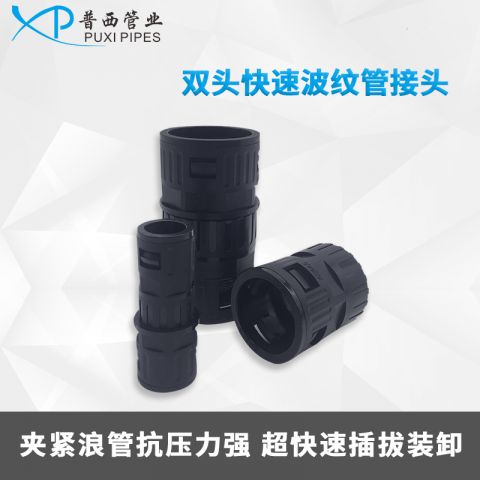 产品特性:夹紧浪管抗压力强,超快速插拔装卸,提高安装效率。两者相互配合,可用于高端机床,线箱等。
